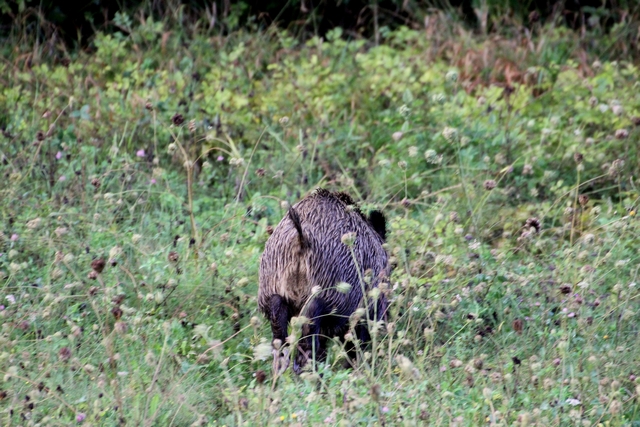 « Et si c’était un pochard endormi là ? » pense Tibo, qui n’ose pourtant pas quitter son poste pour vérifier, galvanisé par les consignes du matin. De nouveau le silence s’installe. C’est trop fort. N’y tenant plus, notre archer décide d’aller voir dans la direction du ronflement, mais le sol trop sec trahit immédiatement son intention, faisant instantanément cesser ces bruits… qui reprennent quelques secondes plus tard. Cinq fois, dix fois le manège se renouvellera sans que jamais le mystère ne puisse être élucidé. De guerre lasse, Tibo décide alors de ne plus tenir compte du ronfleur et de se concentrer sur la battue. Une toute petite heure plus tard, quelques branches cassées annoncent l’arrivée d’un traqueur. C’est Régis. « Hé, Régis, tu peux venir vers moi ? Il faut que je te dise quelque chose… ». « Encore loupé, hein ? C’est une manie chez toi ! » s’esclaffe le traqueur. « Non, non, il m’est arrivé un truc incroyable… » et Tibo raconte l’histoire à un Régis incrédule. « Je n’entend rien… ». « Attend Régis, attend… et tu n’en croiras pas tes oreilles… ». Et soudain, un ronflement, un bon gros ronflement bien sonore se fait entendre apportant à Tibo un soulagement que tout le monde comprendra. « Vas-y Régis, je vais te guider d’ici… » propose t-il alors un peu péteux. Et notre Régis, qui n’a peur de rien, s’avance vers les ronflements qui cessent aussitôt. « A gauche ? » demanda t-il à Tibo. « Non, plus à droite » répondit ce dernier. « Tu ne vois rien ? » ajouta t-il dans un murmure. Régis cherchait et fouillait la végétation, sans résultat. « J’arrive ! » finit par proposer Tibo. Nos deux compères se mirent à ratisser le secteur, jusqu’à un beau et gros tas de fagots empilés là par un bûcheron. Soudain, bondissant du tas de branches comme un diable sort de sa boite, le gros ronfleur, un magnifique ragot d’une centaine de kilos, laissa nos chasseurs médusés, ne leur offrant pour tout souvenir… que la vue de ses suites.