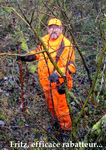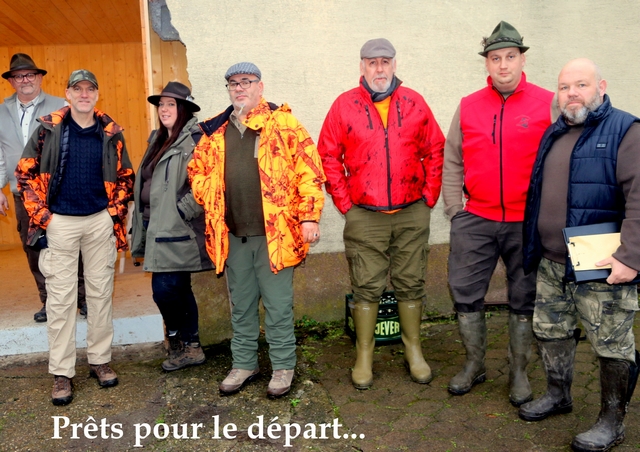 Vingt-cinq chasseurs seront postés, répartis en cinq groupes, chacun conduit par un responsable chargé du placement à l’aide d’une carte. Tous les postes sont installés sur miradors : 37 miradors de battue jalonnent le territoire, positionnés sur les principales voies de fuite. Le rabat est divisé en trois secteurs distincts. Un coup discret de pibole annonce le briefing. Alain Weber présente la journée et rappelle des consignes de tir volontairement ouvertes sur le chevreuil et le sanglier. La fin de chasse est fixée à 12 h 30. Bruno Keiff précise ensuite les règles de sécurité : respect strict de l’horaire, vigilance accrue lors de la montée et de la descente des installations rendues glissantes par l’humidité, tir limité à 30 mètres, obligatoirement fichant, et interdiction formelle de tirer dans les secteurs balisés par des flèches rouges. Chaque tir réussi devra faire l’objet d’un compte rendu destiné à l’enquête de l’ANCGG sur l’efficacité des munitions.