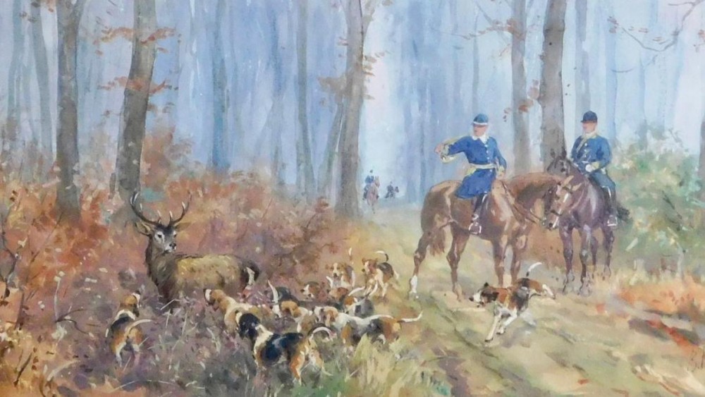 Le baron Karl Reille (1886-1975) est un peintre animalier français, spécialiste passionné de la chasse à courre. Il est né le 8 avril 1886 à Paris dans une famille aristocratique liée à de fortes traditions cynégétiques et artistiques, étant l’arrière-petit-fils du maréchal Honoré Reille et issu d’une lignée déjà impliquée dans l’art et la chasse. I