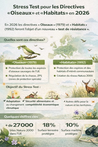 La Commission européenne a annoncé qu’en 2026 les directives « Oiseaux » (1979) et « Habitats » (1992) feront l’objet d’un nouveau « test de résistance » (« stress test »). Ces deux textes constituent les piliers du droit européen de la conservation de la nature et structurent, depuis plus de quarante ans pour la première et plus de trente ans pour la seconde, les politiques de protection de la biodiversité au sein de l’Union. La directive Oiseaux a posé les bases de la protection de toutes les espèces d’oiseaux sauvages naturellement présentes dans l’UE, tout en encadrant strictement leur chasse.