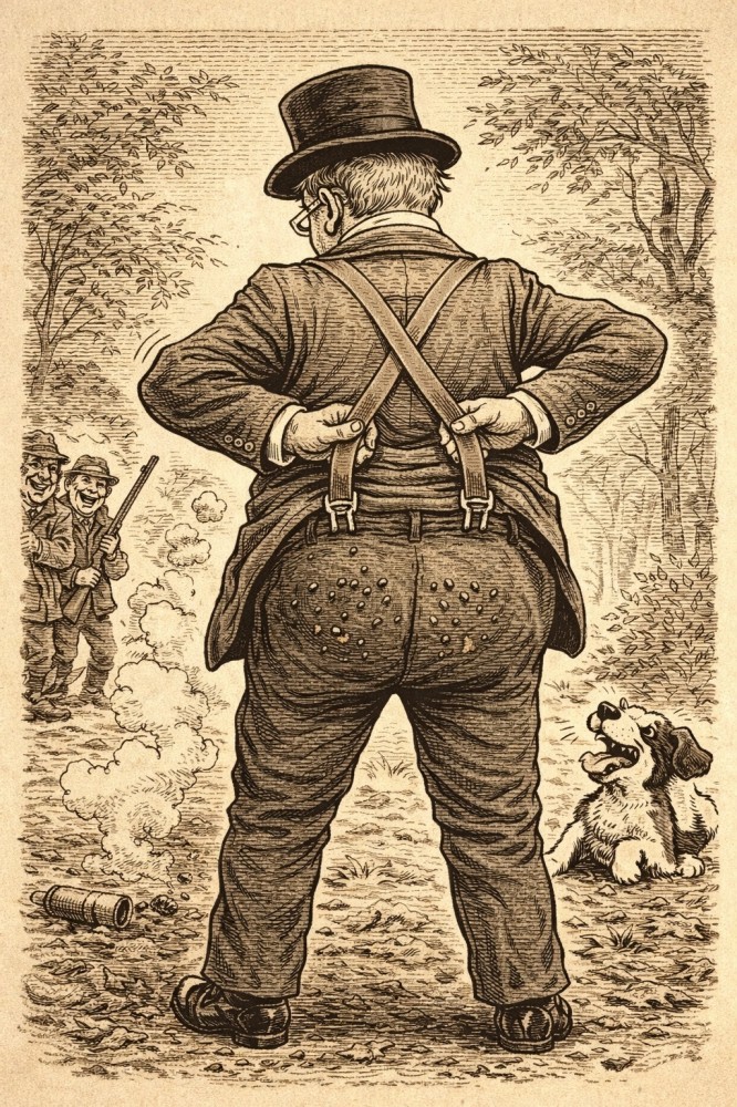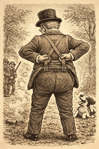Dans le même registre, un numéro de janvier 1885 de la Gazette du Centre, relate les mésaventures du sous-préfet de Rochechouart, Monsieur de Labrunie, en pleine grande chasse aux environs du village. Accompagné d’une meute de vingt chiens et de chasseurs enthousiastes, il s’élança dans les bois avec un courage qui frôlait l’inconscience. Alors que la bête tant convoitée passait devant son fils, le jeune Labrunie tira… et rata lamentablement sa cible. « Je l’ai manqué » cria-t-il à son père. Mais derrière un buisson, une voix se fit entendre : « Mais non malheureux, tu n’as pas manqué ! ». Le dialogue surréaliste dura plusieurs secondes, ponctué de « Mais si ! » et de « Mais non ! », jusqu’à ce que les chasseurs accourent. Quelle ne fut pas leur surprise de découvrir le sous-préfet, en costume de patriote façon sans-culotte, étalé au sol et explorant… les dégâts causés par les plombs du fiston ! Heureusement, aucun mal n’était fait : quelques piqûres dans l’épaisseur de sa tenue suffirent à lui rappeler que l’art de la chasse nécessite… une bonne visée. Le « reculottement » de Monsieur de Labrunie devint légendaire. Les rires fusèrent, sauf pour l’intéressé qui, rouge de colère et de honte, quitta la partie et regagna son vieux château en maugréant contre son fils, sa maladresse, et tous les moqueurs...